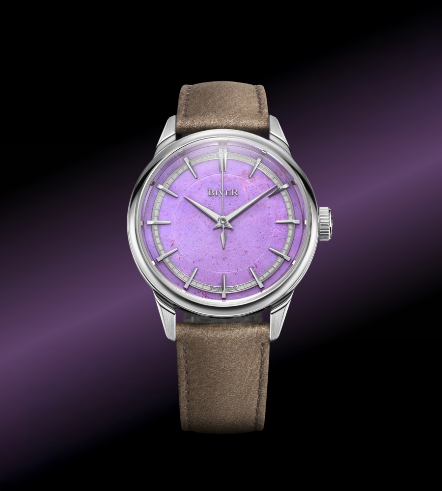 An extremely rare stone, Lavender Jade has historically been associated with royalty, good fortune, and inner peace. Paired with a platinum case, it gives the Automatique an unique look. The blush-colored stone has a subtle texture and is slightly translucent, acting as a perfect foundation for the applied chemin de fer and the finely finished white gold hands.