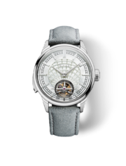 Rose gold and titanium come together to give this Carillon Tourbillon a vintage-inspired look that is emphasized by the two-tone gold dial concealing the complicated movement lurking underneath.